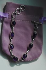 A one of a kind handmade sterling silver and Amethyst bracelet. Made with a T bar fastening.