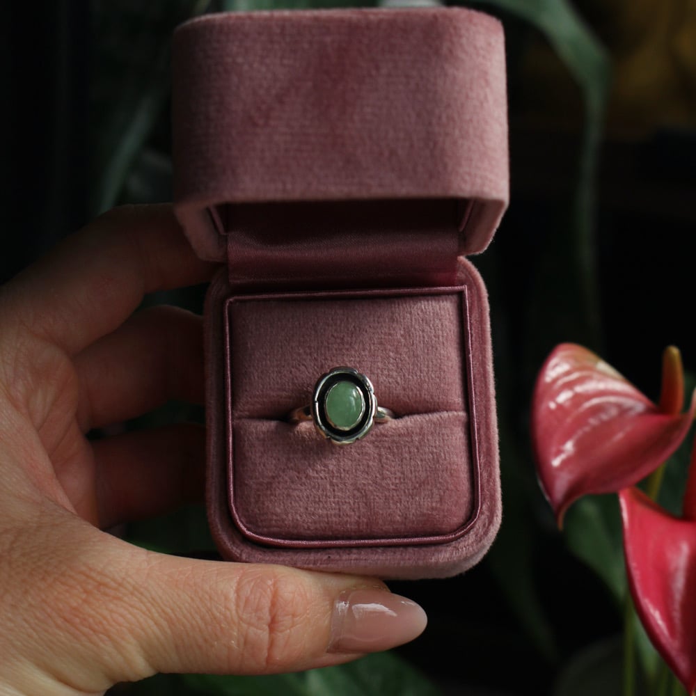 A beautiful rare to come by piece of soft green Jade. Sat in a sterling silver Navajo inspired setting.