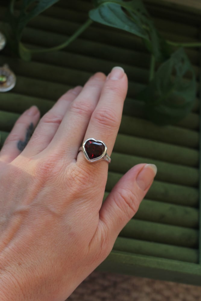 A juicy Garnet heart stone hammer set in solid sterling silver.