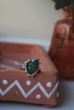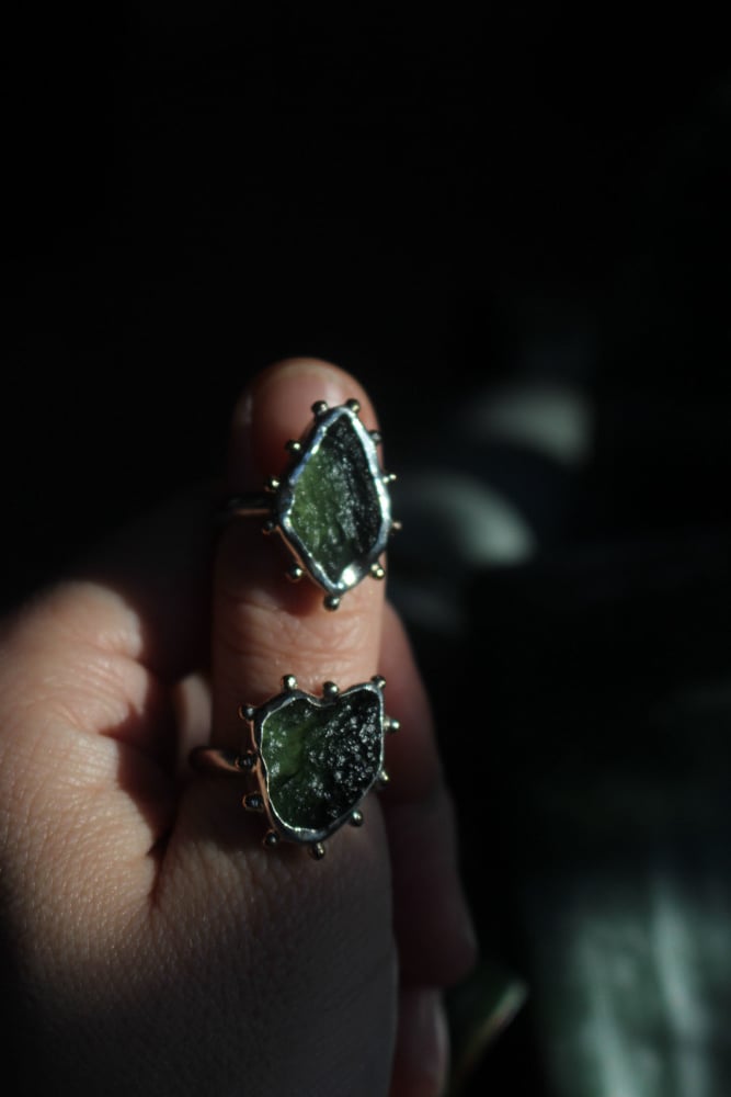 The most wonderful, powerful stone - natural Moldavite. This rare specimen sits in sterling silver surrounded by 9ct gold fill sunbeams.