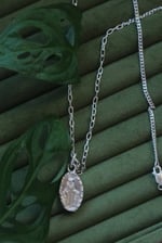 There are only 2 of these available. One comes on a mixed link chain (picture 1), handmade by me. The other is on a sunburst link chain (picture 2).