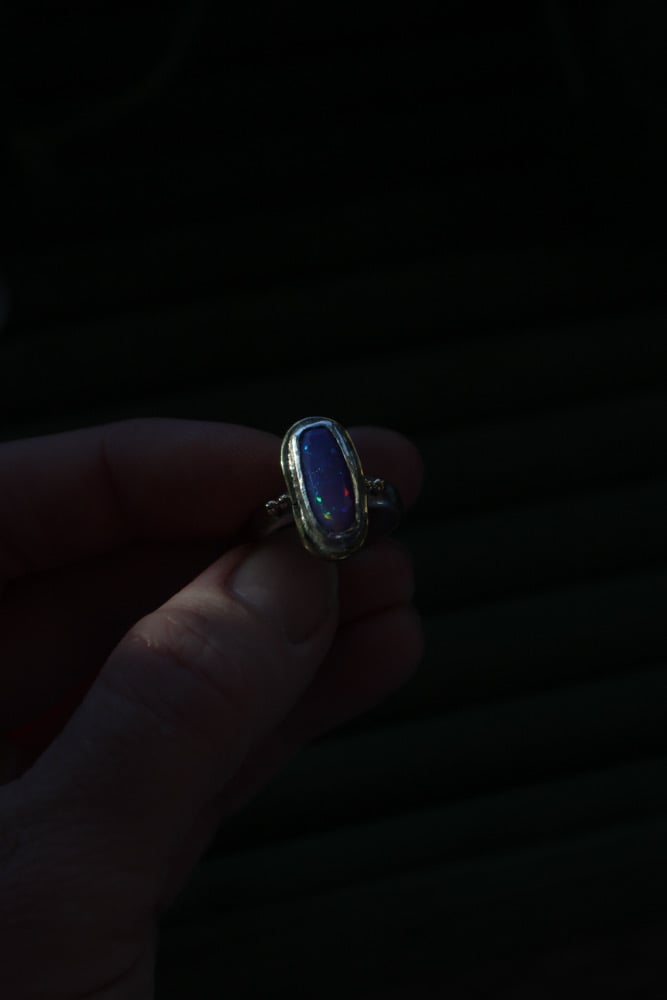 Photos don’t do this stone justice. A wonderful purple Opal which sparkles all colours of the rainbow in every angle.